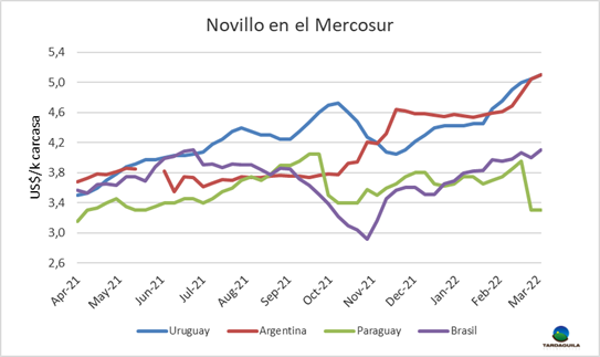 Los precios en Brasil, Argentina y Uruguay subieron esta semana.