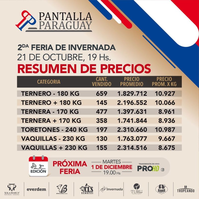 Pantalla Paraguay cerró su segunda feria de invernada con “mucho éxito”, tras comercializar 2.121 cabezas, el 79% de la oferta subastada en la noche del miércoles.