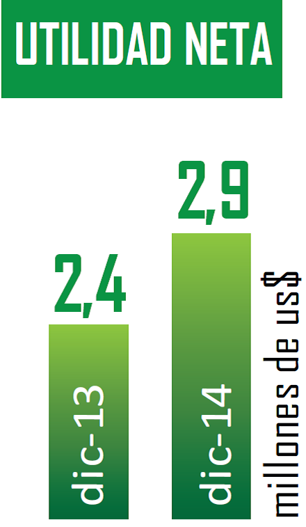 Esto representa aproximadamente una variación del 96% que lo obtenido durante el 2013 (unos US$ 2,4 millones), situación que refleja un buen desempeño.