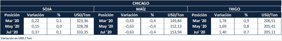 La soja y el trigo subieron en Chicago, si bien no pudieron sostener los avances más expresivos alcanzados durante la noche, mientras que el maíz cayó levemente.