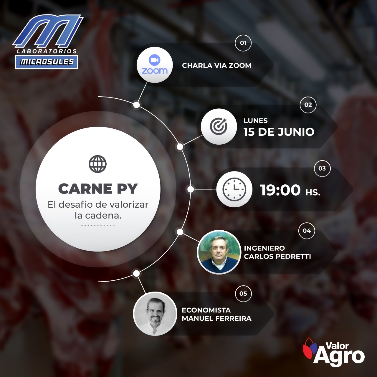 El próximo lunes 15 de junio, Laboratorios Microsules organiza una charla online, vía Zoom, denominada: “Carne en PY, el desafío de valorizar la cadena”, con la participación del economista Manuel Ferreira y el ingeniero Carlos Pedretti.