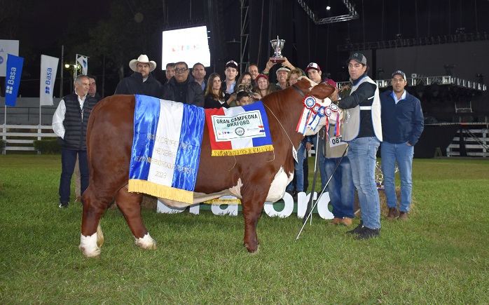 El Gran Campeón Braford correspondió al lote 156 de cabaña María Isabel de Diego Duarte, un toro de 33 meses que fue Campeón de Categoría Senior. Es un hijo de Domingo de 894 kilos y 44,5 centímetros de circunferencia escrotal. El toro fue Gran Campeón de la Expo Nacional que se realizó en abril de 2023.