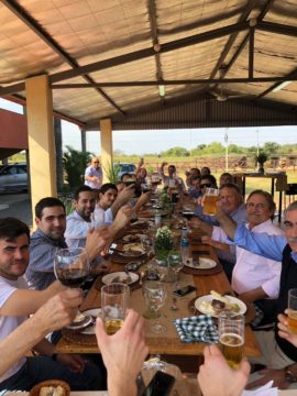 Los uruguayos recorrieron el local feria e intercambiaron información sobre distintas herramientas tecnológicas para desarrollar la innovación en la comercialización de hacienda. Además de disfrutar y destacar la calidad y sabor de la carne paraguaya.