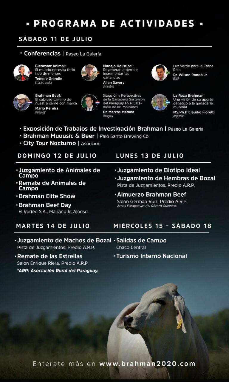 Del 11 al 18 de julio del 2020, en el marco de la Expo Mariano Roque Alonso, el cebú mundial será clasificado y analizado por expertos en la producción de carne roja.
