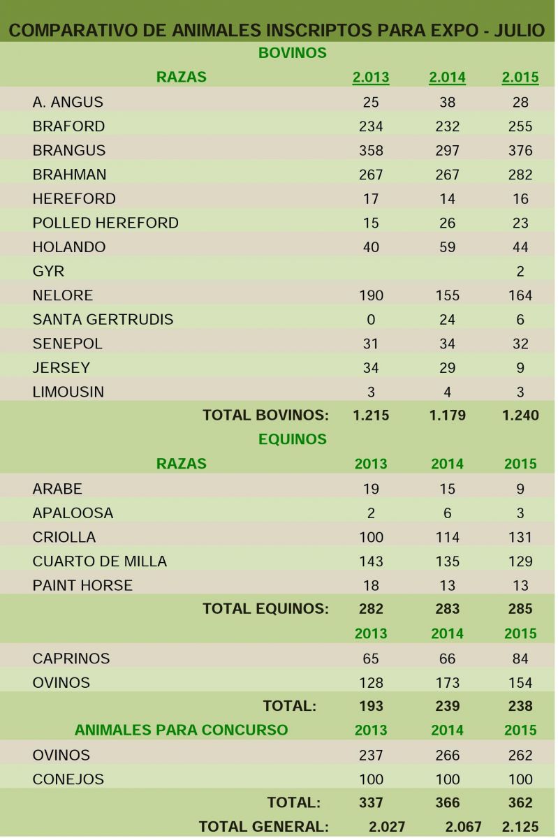 Finalmente resaltó que todos los animales que estarán en exposición durante los quince días, serán animales con ADN registrado, lo que garantizará la calidad de los mismos.
