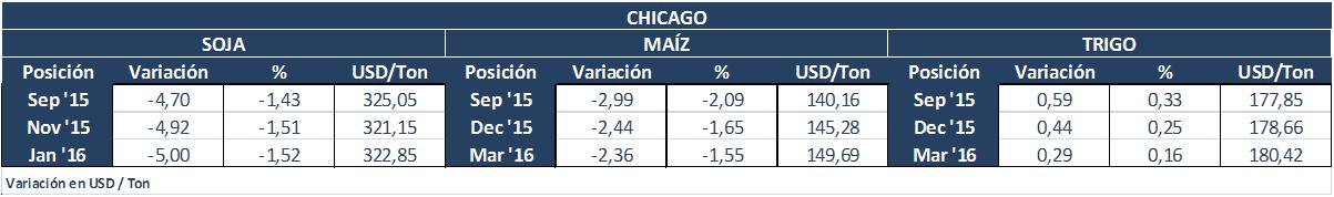 La soja sufrió de lleno los efectos económico financieros de China, en donde se dieron a conocer datos de desaceleración en los sectores manufactureros y de servicios. Por el lado de la oferta, la oleaginosa de origen estadounidense continúa con su ronda de ajustes a la baja, de forma de poder ponerse a tiro de sus competidores mundiales, Brasil y Argentina, los que están vendiendo a valores sensiblemente inferiores. Este lunes, el USDA mantuvo la condición bueno/excelente de los cultivos en 63%, mientras el mercado esperaba alguna mínima corrección hacia abajo.